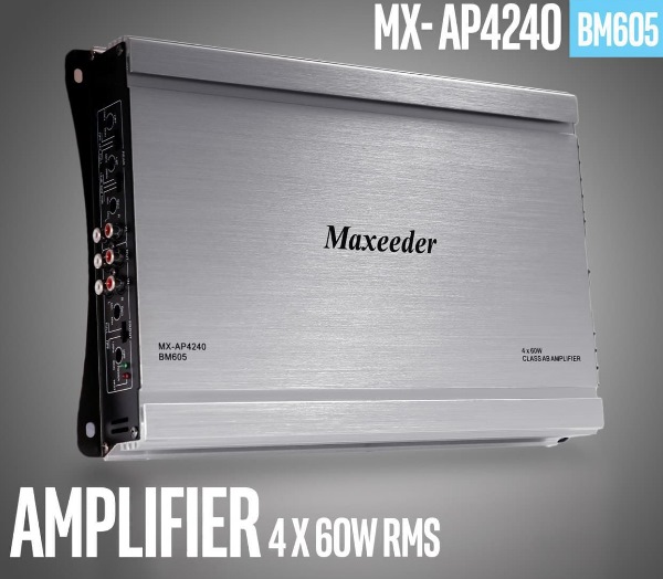 • آمپلی فایر مکسیدر مدل Bm605 دارای 4 CHANNEL و قدرت خروجی 5000W و توان خروجی واقعی 4X60W آر ام اس میباشد.این امپلی فایر کلاس AB هست آمپیلی فایر مکسیدر مدل Bm605 با توان خروجی ذکر شده و هم چنین قیمت بسیار پایین آن مناسب جهت نصب سیستمهای معمولی میباشد.