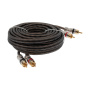 در یک سر کابل، دو فیش نری زاویهدار قرار دارد که برای فضاهای محدود پشت دستگاههای صوتی ایدهآل است. سر دیگر کابل نیز دارای دو فیش نری مستقیم است که اتصال آسان به آمپلیفایرها یا ورودیهای باز را فراهم میسازد. این ترکیب طراحی، انعطافپذیری بیشتری برای نصب فراهم میکند. جنس بدنه فیشها از مواد مقاوم در برابر فشار و خمش بوده و پوشش لاستیکی آنها در مقابل لرزشهای جادهای نیز از قطع اتصال جلوگیری میکند.