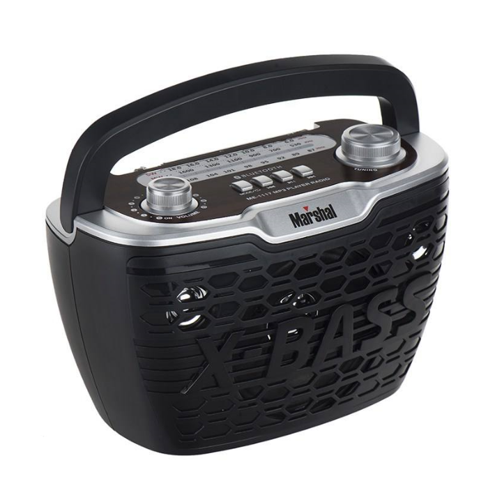 نسل جدیدی از رادیو های حرفه ای مارشال مدل با Me-1117 دارای پورت USB / SD و هم چنین امکان بلوتوث میباشد رادیو مارشال با قابلیت کار کردن با برق و باطری و شارژ داخلی یکی از محبوبترین محصولات شرکت مارشال می باشد.