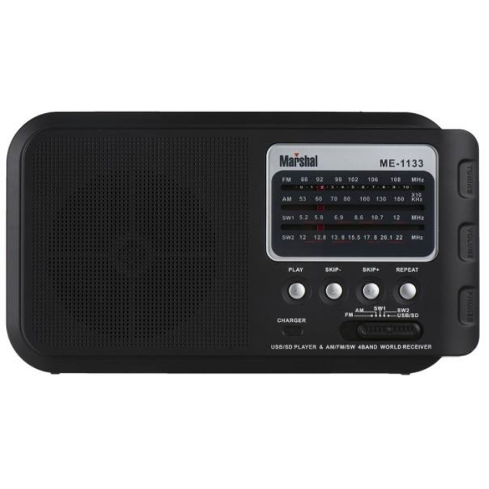 نسل جدیدی از رادیو های حرفه ای مارشال مدل با Me-1133 دارای پورت USB / SD و هم چنین امکان بلوتوث میباشد رادیو مارشال 1133 با قابلیت کار کردن با برق و باطری و شارژ داخلی یکی از محبوبترین محصولات شرکت مارشال می باشد.
